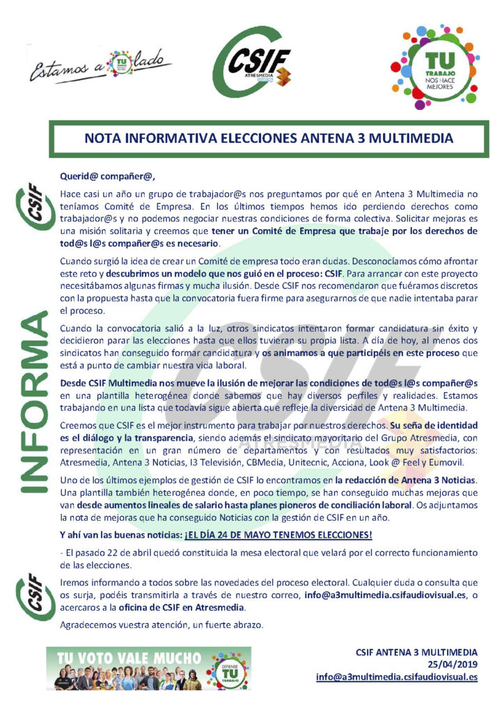 ¡ELECCIONES SINDICALES EN ANTENA 3 MULTIMEDIA!